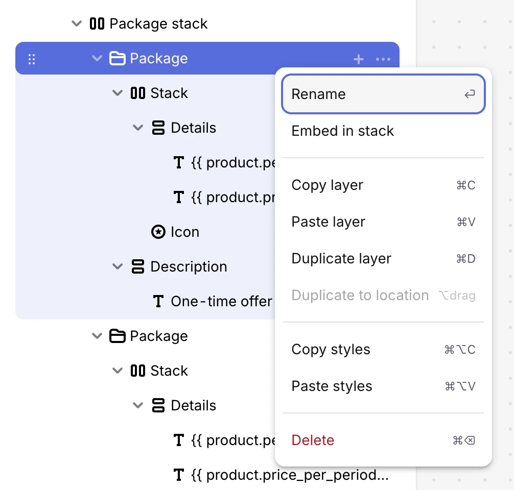 1. In the paywall editor, add a Package component for each of your lifetime packages