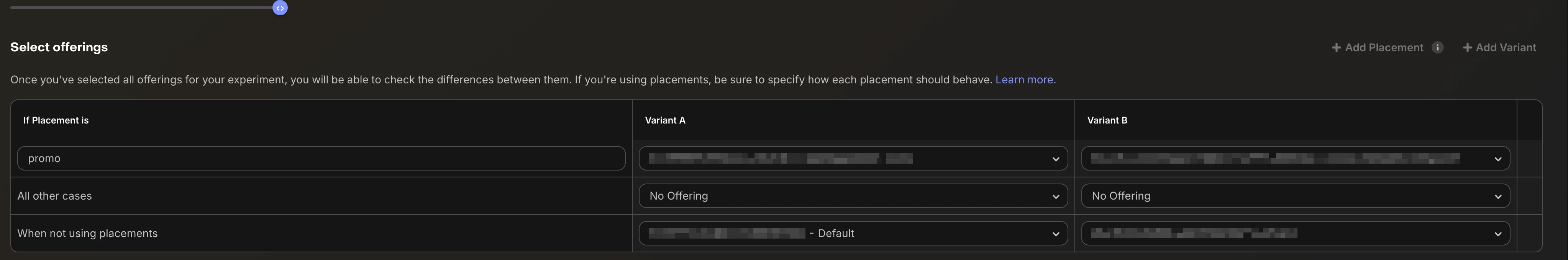 I want the experiment to only affect “onboarding” placements, not the other ones. But in the console it seems like I have to set variants to all other placements, too, and the experiment overrides all my placement settings.