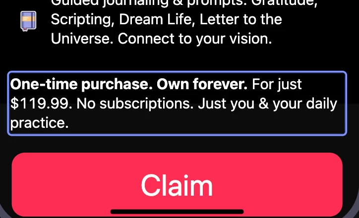 One-time purchase. Own forever. For just {{product.price_per_period}}. No subscriptions. Just you & your daily practice.