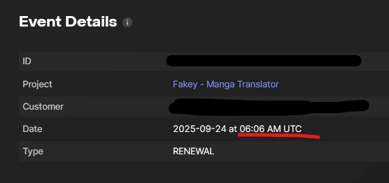 However, when i click the event details for the renewal, it is showing 06:06 AM UTC