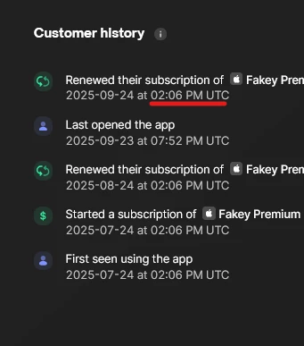 Hi @adib-zaini, this is due to the App Store processing renewals prior to the end of the current subscription period. Commonly, we observe Apple processing the renewal about 8hrs prior to the end of the period. If you’re using Server Notifications, we’re notified as soon as this happens and will dispatch events/webhooks accordingly.