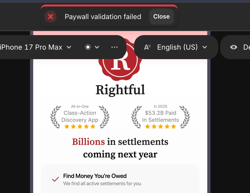 I made my paywall from a template and it worked normally in my expo dev build on my phone. I was tweaking it little by little and publishing changes while checking the disign updates on my phone. But after making the last edit i cant publish the paywall, It says Paywall valifation error but i bare changed anything big. i only changed some font, border sizings and maybe some colors. It doesnt even show where the errors are. Ichecked every component and everything is fine. I also tried duplicating the paywall and now it gives me an Internal server error. Has anyone ever encountered this?