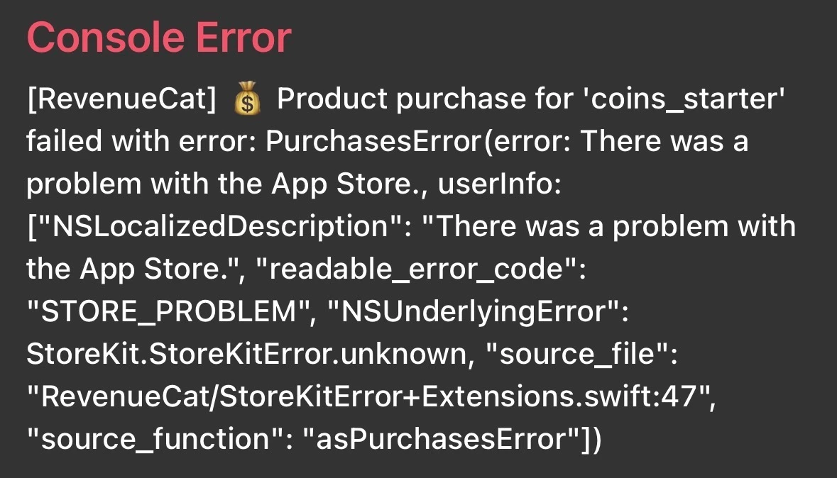 App Store purchases failing for unknown reason
