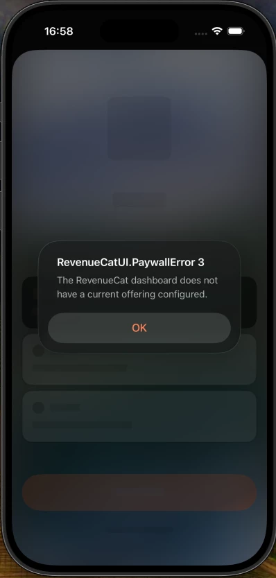 After checking your Paywall configuration, I can see that your Paywall only has Web Billing Products. As a result, the SDK in your mobile application is unable to find available products compatible with iOS, and the Paywall cannot be rendered.