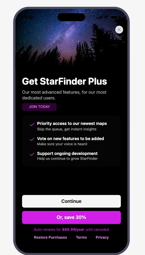 I understand that you prefer users to make purchases on the web instead of through in-app purchases. In that case, we have some interesting Paywall templates that could help you design it, so that users would prefer to purchase on the Web instead. Below you can find an example.