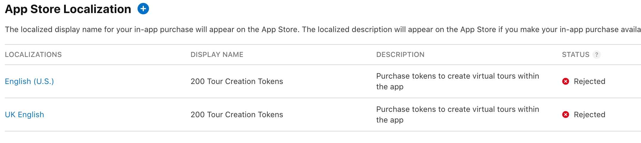 Specifically the app store localization keeps being reject.