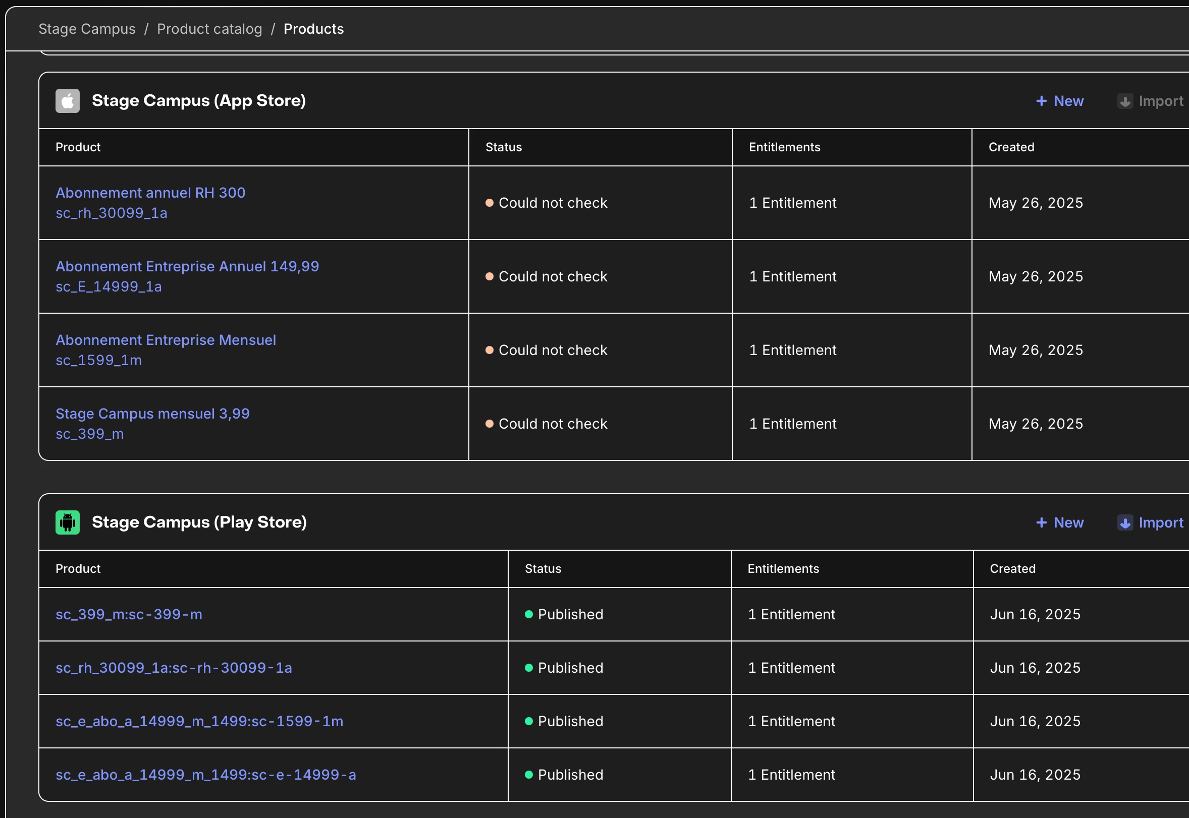Actually I have an issue with my setup . I get a grey screen while testing on my phone (android) . I wanted to know If someone can help? And do I should only one product per entitlement ?