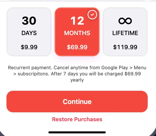 I want to change the disclaimer text in my paywall depending on the type of package the user selects. When the user picks a subscription package, I need to show the cancellation instructions that Google Play requires. When the user picks a lifetime package, I want to show a simple one time purchase disclaimer.