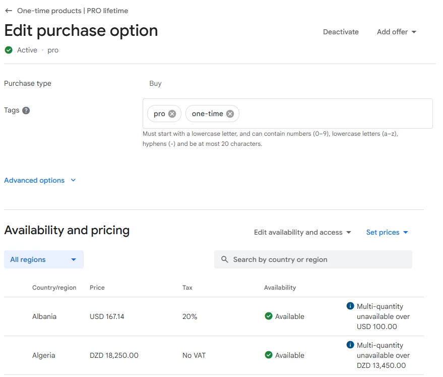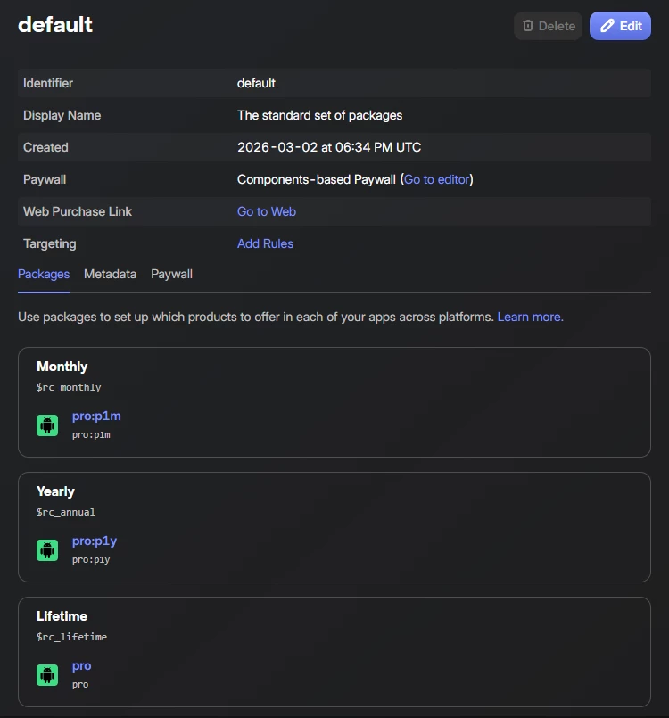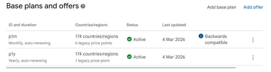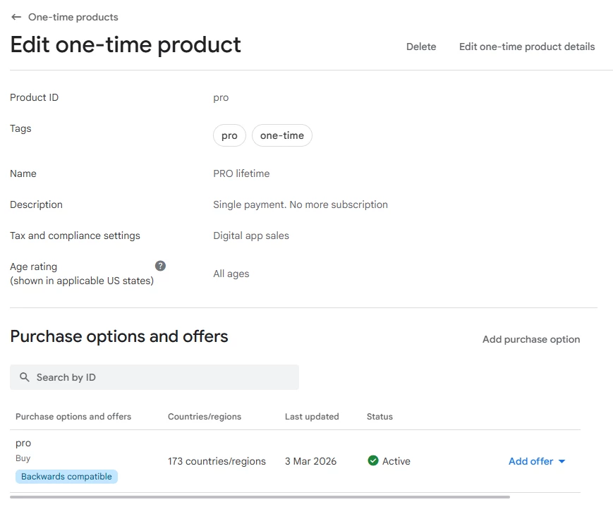 But when I show the paywall in my phone, the last option is not there, just showing the subscriptions. Inspecting the products I get, there are only the 2 subscriptions.