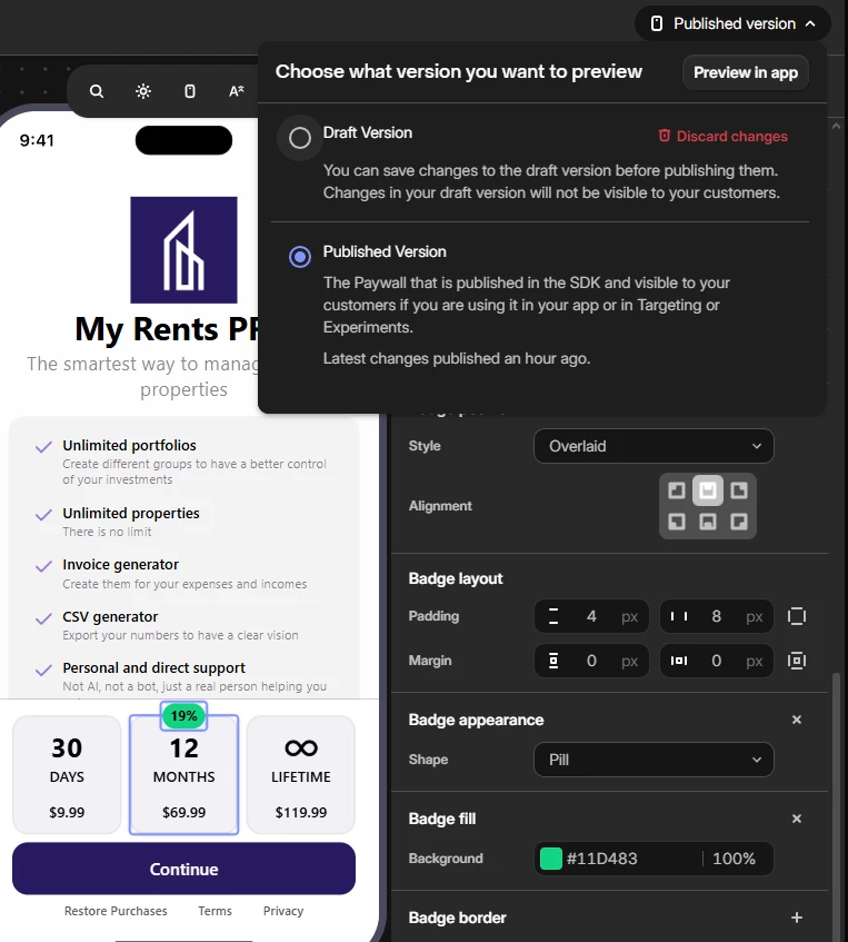 Now moving to the paywall, I'm showing the 3 offers correctly: