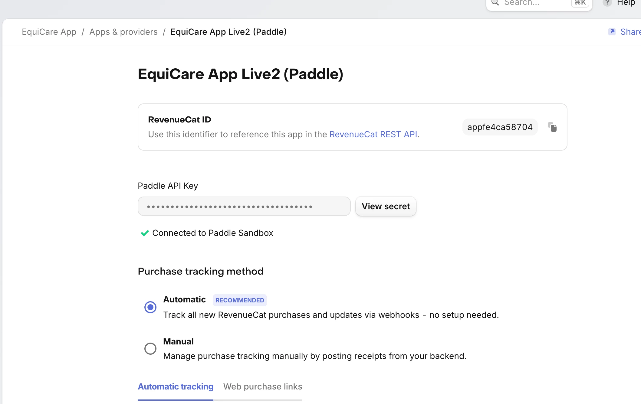 I am verify Live api key all fine. then I added the API key in revenue cat then webhook automatically in my live Paddle account. And logs print in paddle as well. but LIve data not coming in RevenueCat side