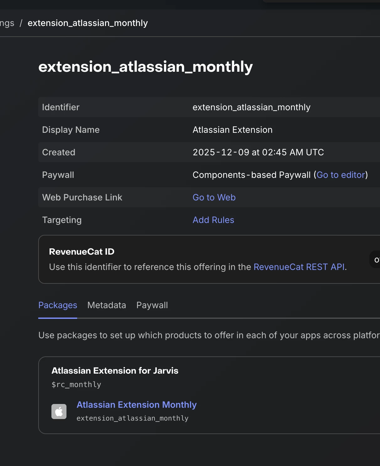 I have triple checked that the Product IDs match exactly `extension_atlassian_monthly` in both App Store Connect and RC.