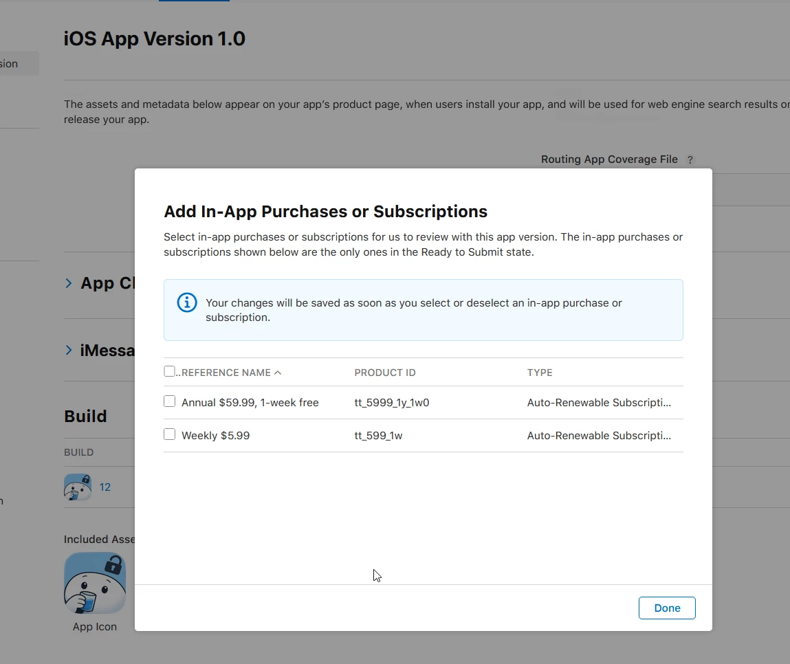 When creating new app build (with fixed metadata) -> try to add "In-App Purchases and Subscriptions":